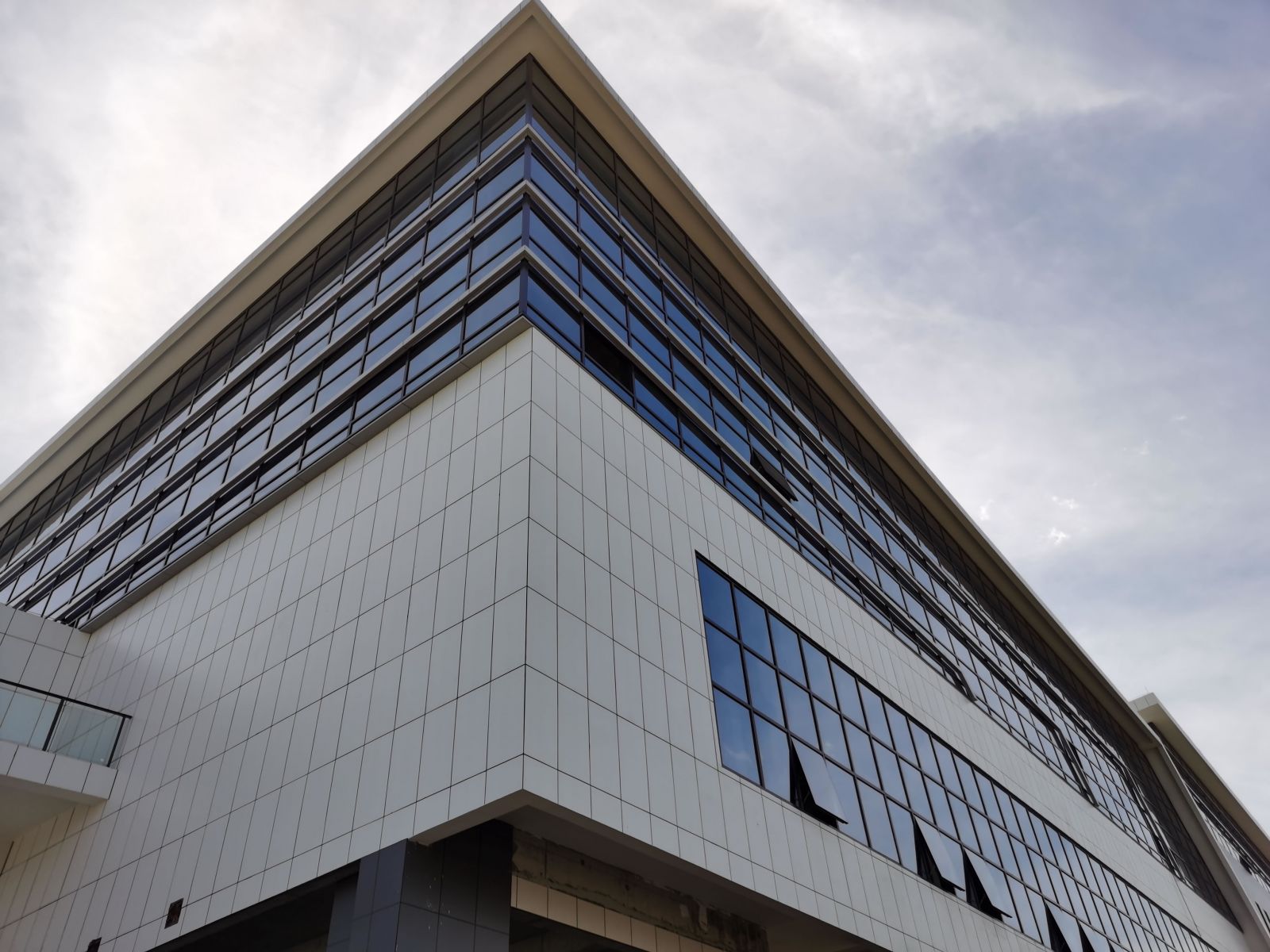 協(xié)進(jìn)工程案例:珠海共電大廈 使用產(chǎn)品:600*1200陶瓷薄板 整棟建筑外立面使用白色、灰色陶瓷薄板鋪貼裝飾。 整體效果簡約、前衛(wèi),現(xiàn)代感強(qiáng)烈。